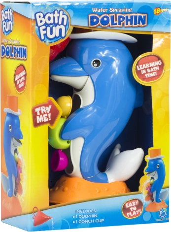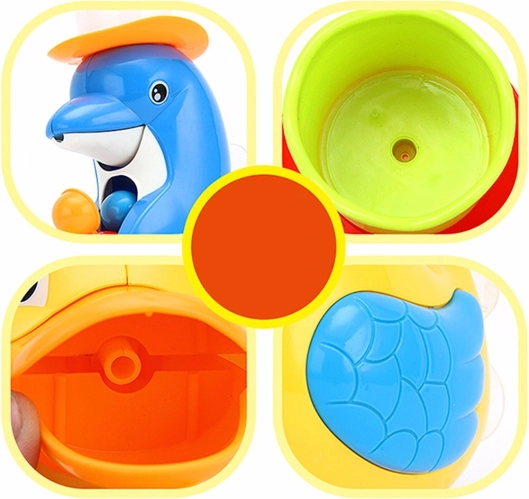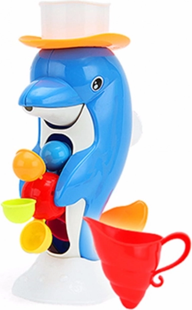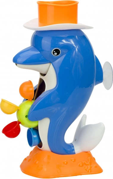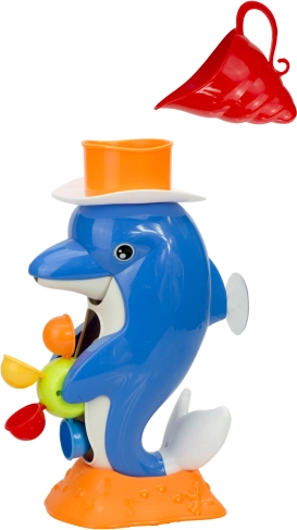 Un eccellente giocattolo a forma di delfino pensato per giocare in acqua. Versando nel cappello a forma di delfino, l'acqua mette in movimento il mulino. Una ventosa sul retro permette di fissare il delfino alla vasca o alla parete del bagno. Il giocattolo è realizzato in plastica di alta qualità, non tossica, caratterizzata da un'elevata resistenza ai danni. La confezione include una brocca per versare acqua a forma di conchiglia.