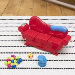 Il gioco sviluppa prontezza, pazienza e motricità fine e allo stesso tempo offre molte situazioni casuali e divertenti che i bambini adorano. Si apre la scatola e si gioca – nella confezione trovi tutto il necessario: divano interattivo, gettoni colorati, snack e un dado da gioco (a seconda della versione può esserci anche uno spinner).