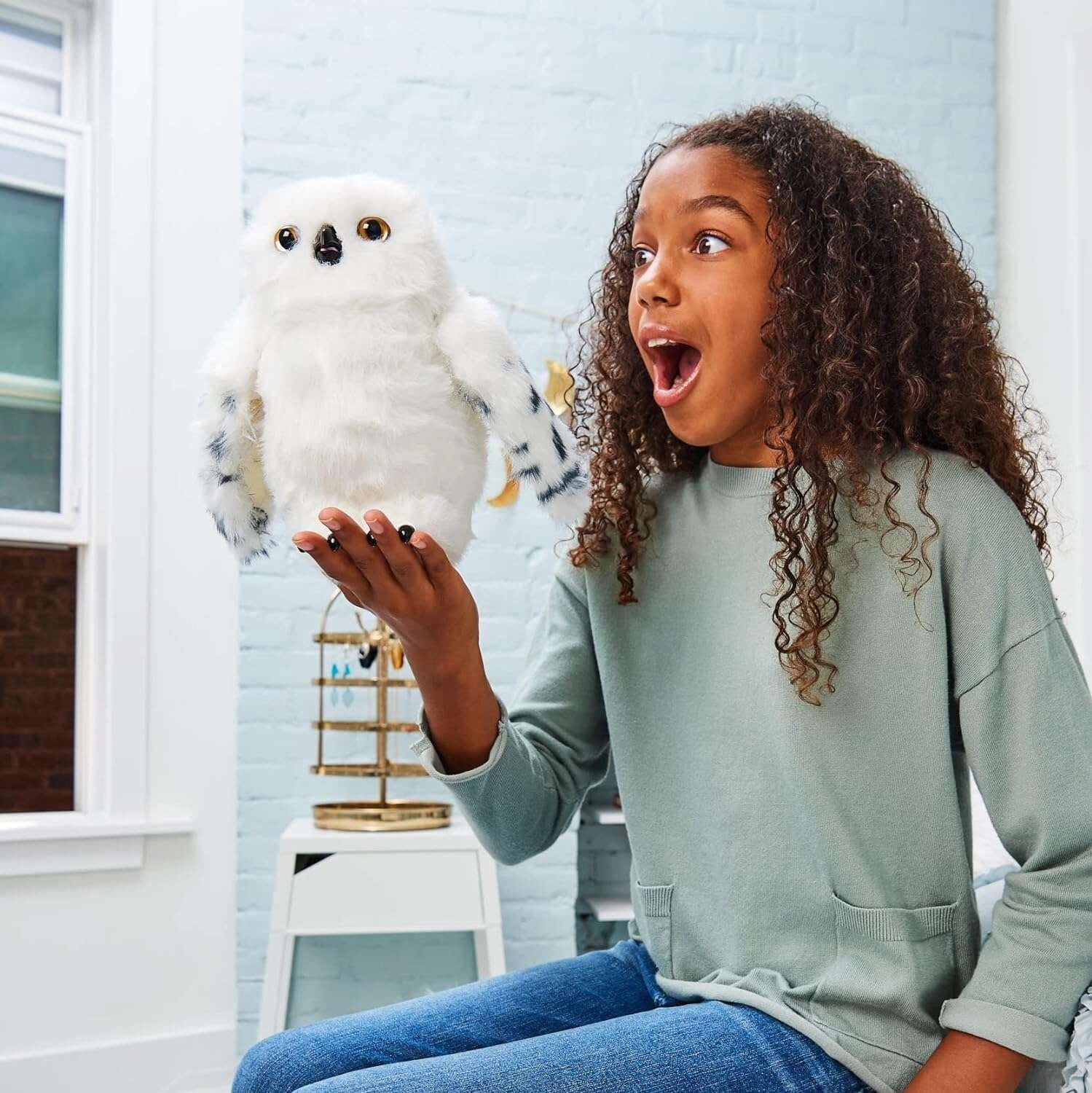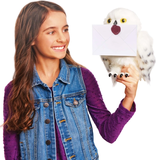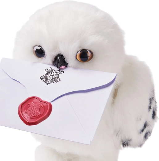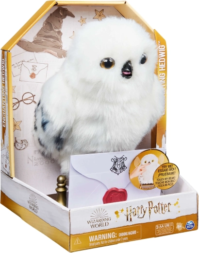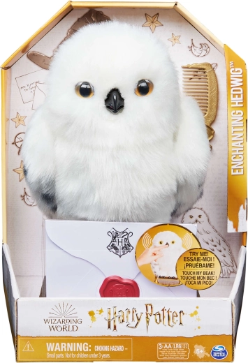 Scopri il fedele gufo di peluche che prende vita al tocco. Edvige ha soffici “piume” bianche con delicate macchioline sulle ali, occhi realistici e un becco apribile che attiva magici effetti sonori e movimenti. Perfetta per coccole, esposizione e posta fantastica da Hogwarts.