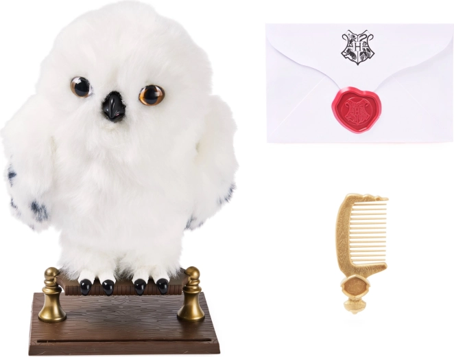 Nella confezione trovi tutto per un gioco incantato: un trespolino decorativo per l’esposizione, una lettera a tema con sigillo e un pettinino dorato per sistemare il soffice manto. Idea regalo ideale per bambini dai 5 anni, fan di HARRY POTTER e per chi ama i peluche interattivi.