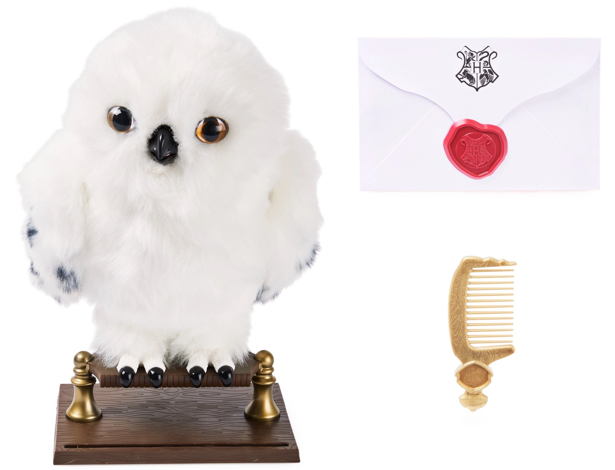 Il dolcissimo gufo interattivo Edvige dal magico mondo di HARRY POTTER farà felici piccoli maghi e collezionisti. Offre oltre 15 suoni e movimenti, apre il becco, muove la testa e le ali e sa “recapitare” una lettera segreta da Hogwarts. Inclusi un trespolino elegante e un pettinino per prendersi cura del soffice piumaggio.