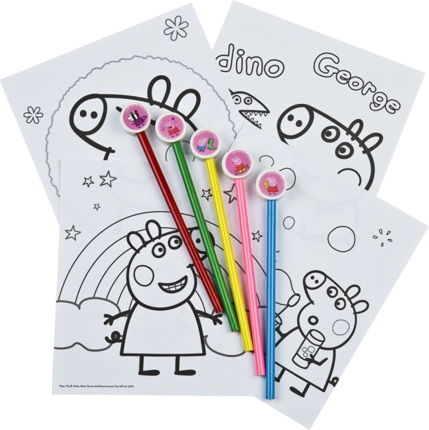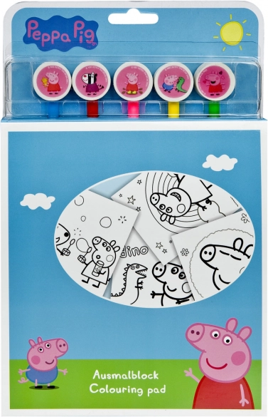 - 24 poster con motivi di Peppa Pig che i bambini possono colorare secondo la loro fantasia.