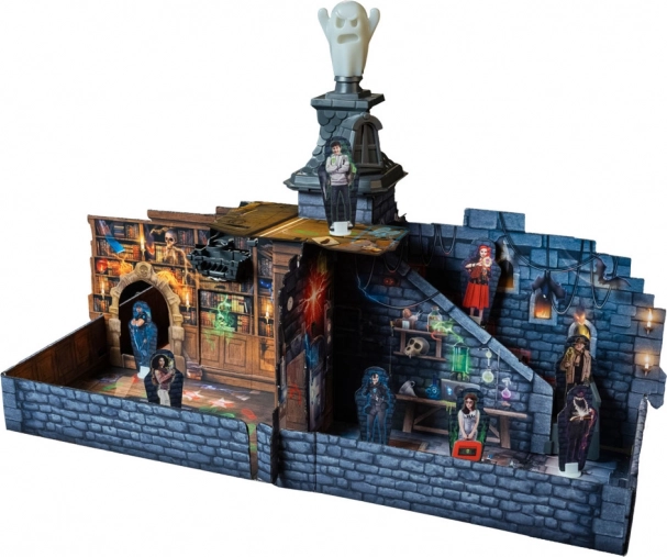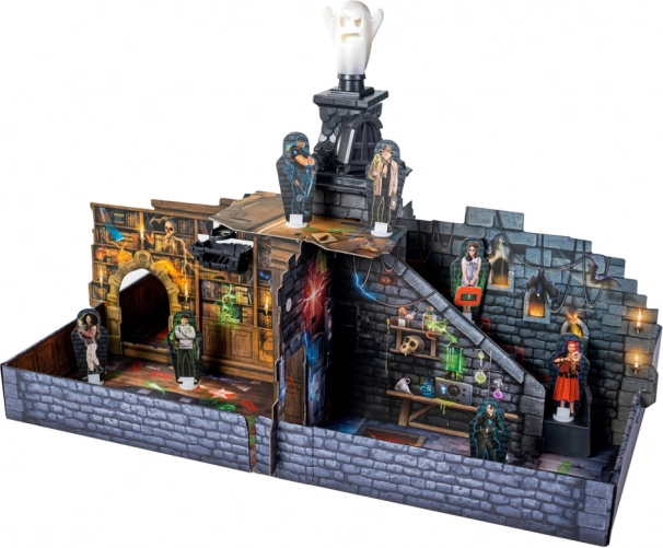 La confezione include tutto il necessario per giocare subito: 1 tabellone, 1 manuale, 1 spirito luminescente, 8 pedine e numerosi accessori a tema per un maggiore divertimento.