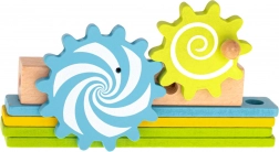 Ingranaggi colorati e elementi di costruzione introducono i principi della meccanica in modo divertente e stimolano la creatività.