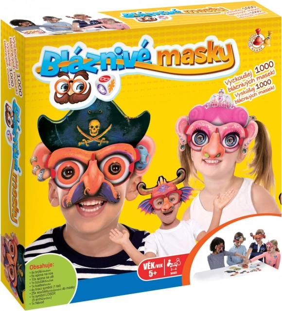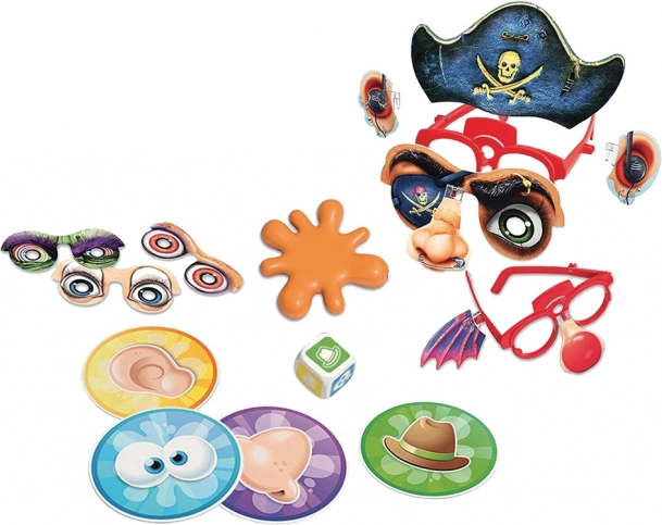 Crea migliaia di combinazioni buffe e sfidatevi a chi realizza la maschera più pazza. I bambini si alternano nel lancio del dado, scelgono i componenti e in un attimo prendono vita pirati, mostriciattoli cornuti e personaggi strampalati. I pezzi colorati si fissano facilmente agli occhiali, rendendo il gioco rapido, sicuro e intuitivo.