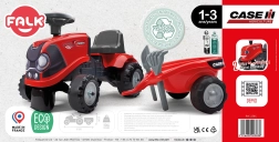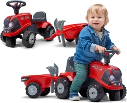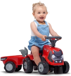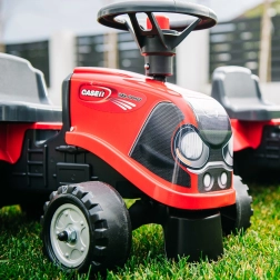 Il trattorino spingi-piedi rosso FALK BABY CASE IH con rimorchio rimovibile è il primo veicolo ideale per i bambini dai 12 mesi. Offre una struttura robusta in plastica di qualità, clacson sul volante e accessori – paletta e rastrello. Grazie alle ruote stabili e all’asse anteriore sterzante, la guida è sicura e divertente sia in casa che all’aperto.