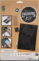 Crea un'opera originale a tema gatto – basta grattare delicatamente le linee prestampate e sotto lo strato di copertura nero appariranno i colori dell'arcobaleno. La fantasia non ha limiti: puoi lavorare anche sulle aree nere libere e creare una cornice o dettagli personalizzati.