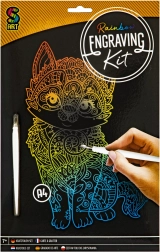 Lo strato di copertura nero, quando viene grattato, si trasforma in vivaci colori arcobaleno. Crei un motivo di gatto dettagliato senza bisogno di colori o colle – basta la penna inclusa.