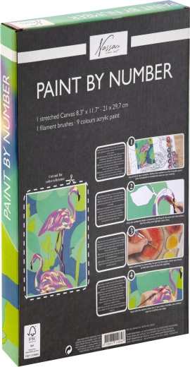 Scopri la gioia del creare con il set di pittura per numeri con motivo fenicottero. Tela finita di dimensioni 33,5 × 23,8 cm, 9 colori acrilici numerati e 1 pennello per facilitare la pittura anche ai principianti. Attività creativa ideale per bambini dagli 8 anni e per tutti gli amanti del relax con la pittura.