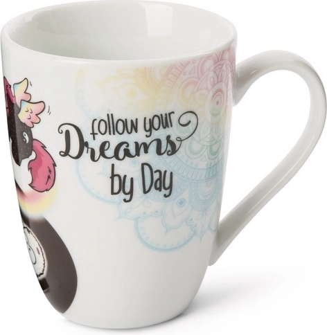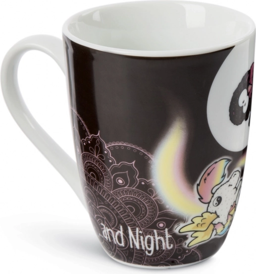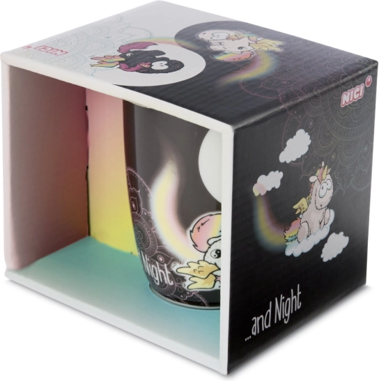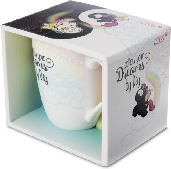 Scoprite la magica tazza NICI con gli unicorni Rainbow Yin & Yang, che combina uno stile minimal in bianco e nero con allegri dettagli arcobaleno. La scritta “Follow your Dreams by day and night” ricorda che i sogni meritano attenzione in ogni momento della giornata.