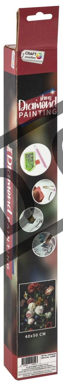 Consiglio d'uso: Rimuovi la pellicola dalla tela gradualmente in piccole sezioni, in modo che lo strato adesivo rimanga pulito e le pietrine aderiscano bene. Una volta terminato, il quadro può essere incorniciato (la cornice non è inclusa).