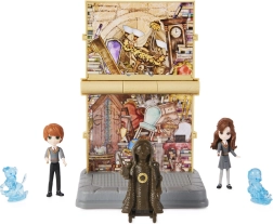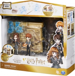 Include figure da 7,6 cm di Hermione e Ron con braccia snodate, Patronus traslucidi – una lontra e un terrier – e un manichino da allenamento per duelli di magia.