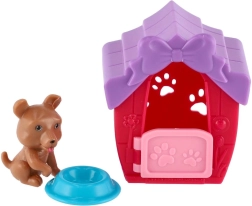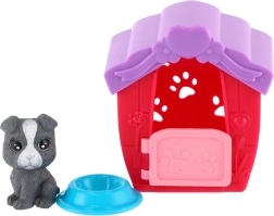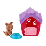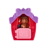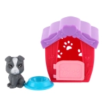 Il set include una ciotola per il cibo e una figurina del cucciolino. La casetta è decorata con un fiocchetto e zampine in rilievo, che aggiungono un tocco di stile al gioco.