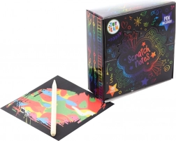 Il set include tutto il necessario per esplorare il mondo del grattare. Ogni immagine è di dimensioni 9x9 cm e permette di creare bellissimi motivi semplicemente grattando. Il set è dotato di un bastoncino di legno per grattare, che ti aiuterà a rivelare lo strato colorato sotto la superficie nera. Tutto è accuratamente imballato in una scatola che contiene facilmente tutti i componenti.