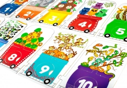 Ogni vagone e la locomotiva sono composti da tre pezzi, il che è ideale per lo sviluppo delle capacità mentali e motorie dei bambini in età prescolare. Il puzzle è uno strumento eccellente per avvicinare i bambini ai nomi degli animali e aiutarli a comprendere i numeri.