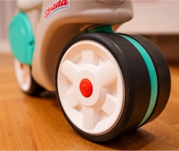 Le ruote larghe e il clacson sul manubrio offrono stabilità extra e divertimento durante la guida.