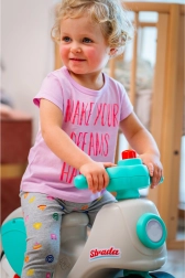 Bicicletta Senza Pedali Strada Retro richiama i giocattoli degli anni '70 in una nuova veste moderna. È ideale per i bambini da 1 anno e può sostenere fino a 25 kg. Grazie alle ruote silenziose coperte da uno strato di elastomero, offre un'esperienza di guida liscia e silenziosa, mentre le ruote larghe garantiscono stabilità.