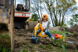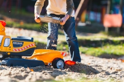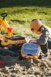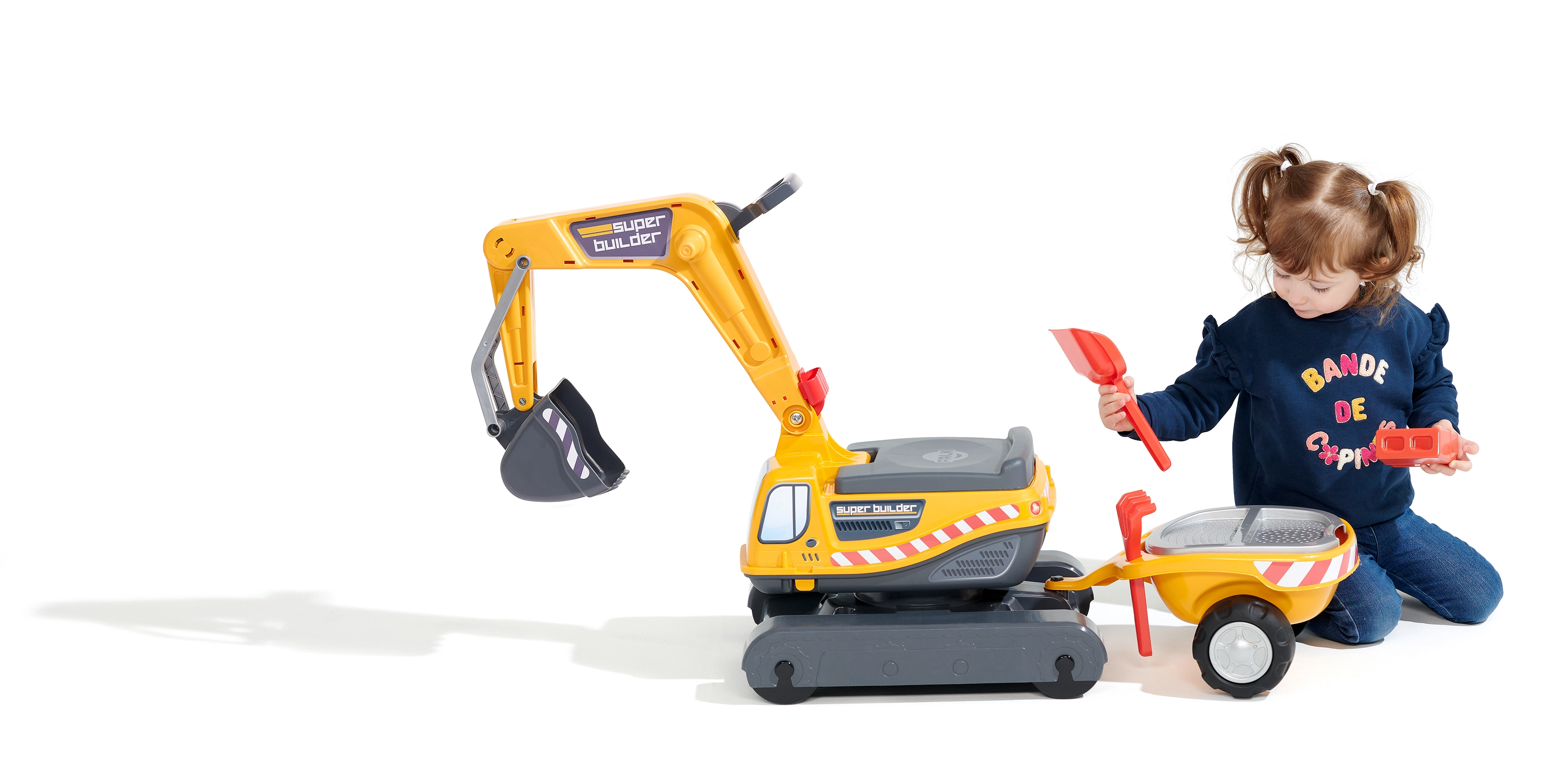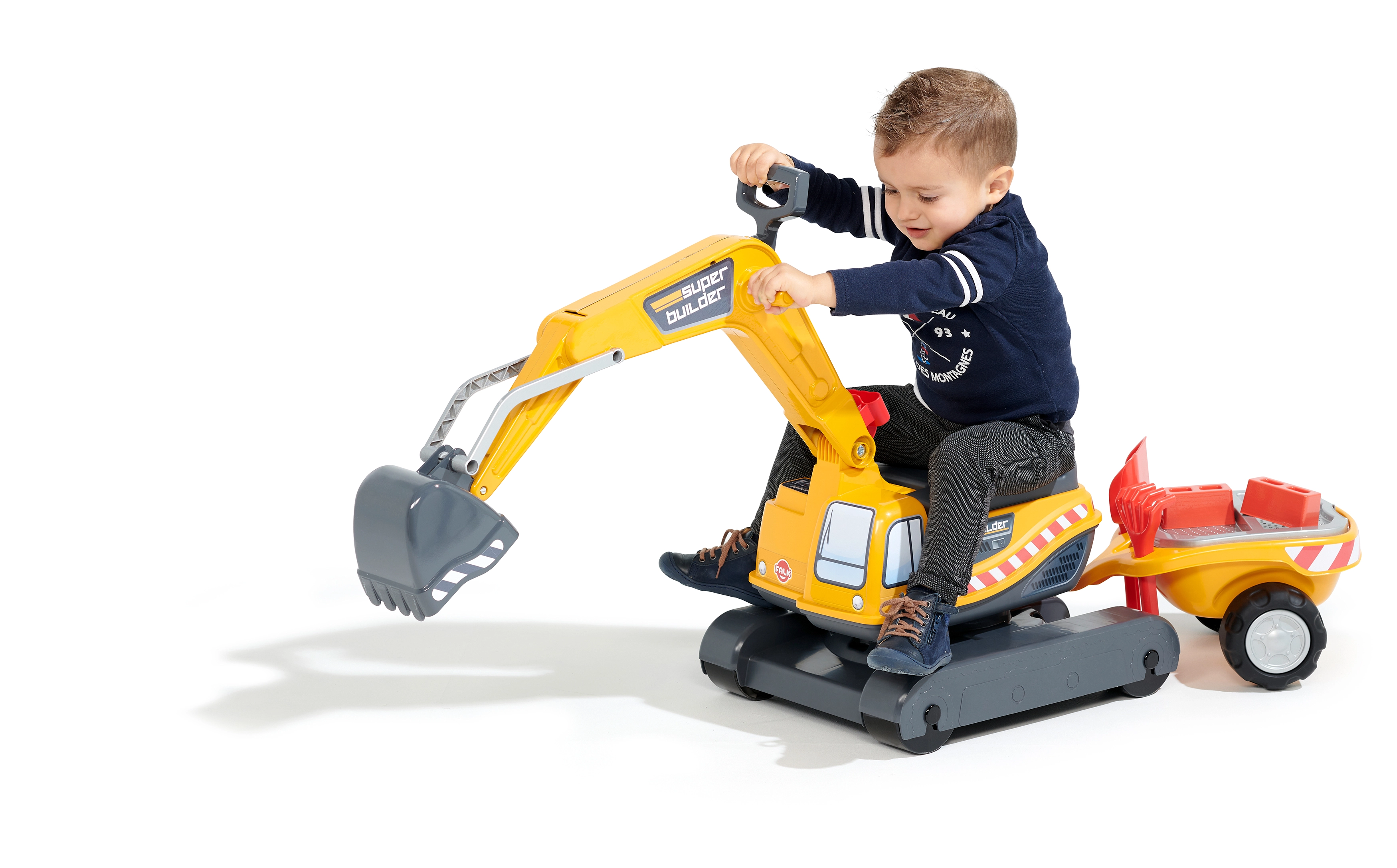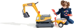 Monopattino a spinta Super escavatore cingolato arancione con benna funzionante, imitazione dei cingoli, rimorchio e set da gioco per la sabbia – 2 stampi a forma di mattone, paletta e rastrellino. Realizzato in plastica di alta qualità e resistente. Dimensioni 85×38×67 cm. Età 3+. Tutti i trattori Falk sono testati fino a 50 kg – secondo i requisiti delle norme europee. Prodotto in Francia.