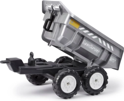 Rimorchio “Super dumper” a quattro ruote, di colore grigio. Compatibile con i trattori Falk. Realizzato in plastica di alta qualità in Francia.