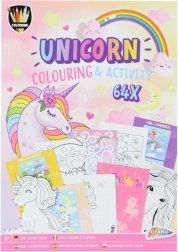 Libro pieno di colorare e attività a tema Unicorno, che offrirà divertimento nel disegno, colorazione e attaccare adesivi su 64 pagine.