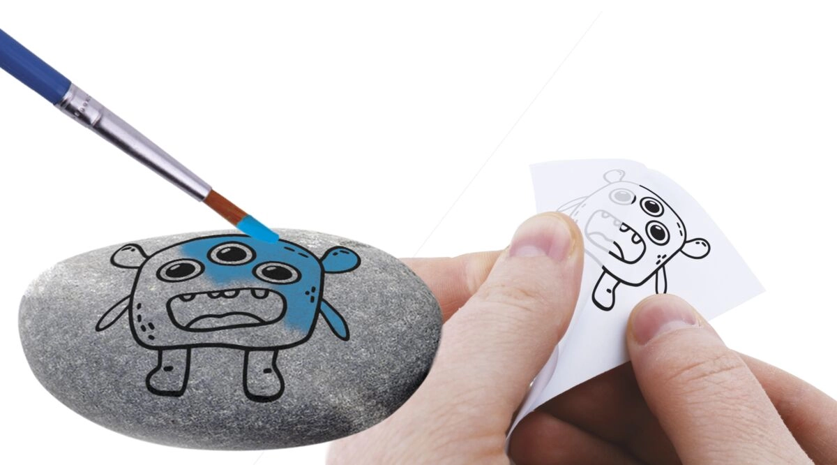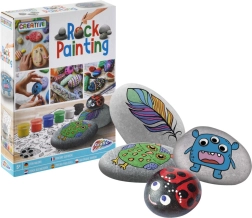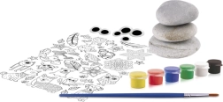 Questo set creativo trasforma semplici sassolini in simpatici mostriciattoli, pesci, faccine e altre decorazioni originali. Basta applicare un motivo adesivo, aggiungere occhi mobili e rifinire con sei colori intensi. Grazie al pennello incluso e ai ciottoli lisci, i bambini creeranno bellissimi lavoretti anche senza esperienza.
