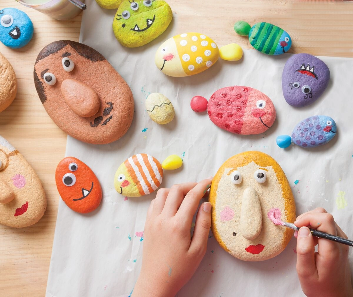 Crea faccine, pesciolini e mostriciattoli adorabili e pieni di espressione: gli occhi mobili e i dettagli in rilievo danno ai ciottoli un carattere unico.