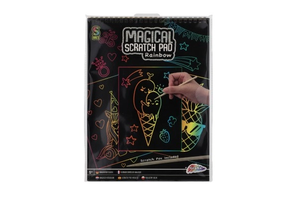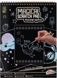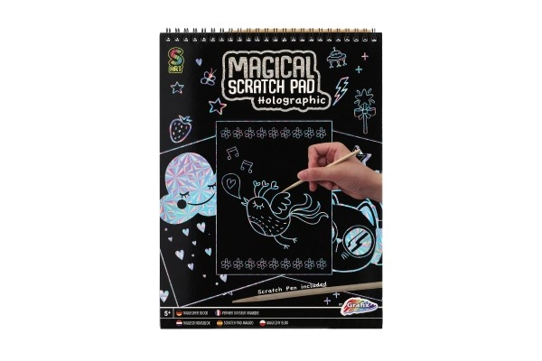 Scopri un modo divertente di creare con il blocco scratch dall’effetto olografico. Basta prendere la matita per graffiare inclusa e incidere la tua immagine o scritta: sotto lo strato rosso si rivela una superficie olografica spettacolare. Ideale per sviluppare la creatività, la motricità fine e per momenti di relax. Formato 21 × 28 cm, adatto dai 5 anni.