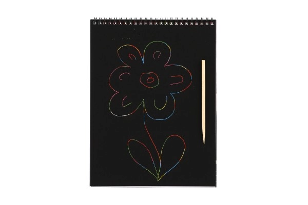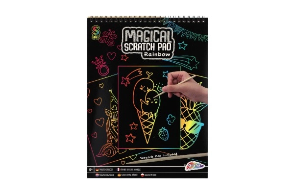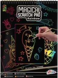 Il blocco scratch ad anelli è un regalo perfetto per creativi piccoli e grandi. Con la matita per graffiare inclusa realizzerai in un attimo immagini, scritte o pattern originali. Una volta rimosso lo strato rosso, appare un brillante effetto olografico che dona a ogni creazione un vero effetto wow.