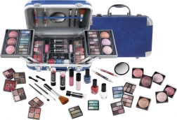 Beauty case con angoli in alluminio Travel Blue con specchietto integrato – in totale 84 pezzi di accessori.