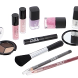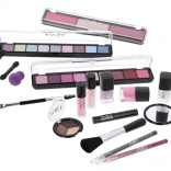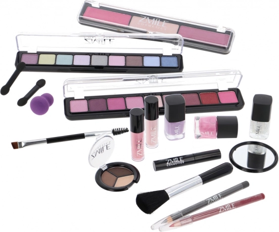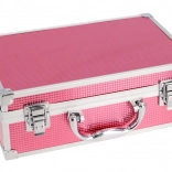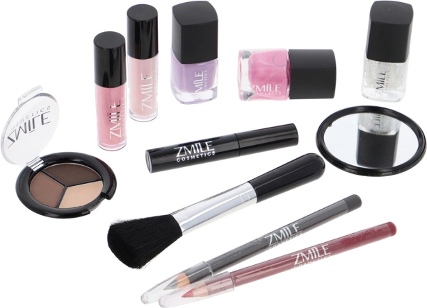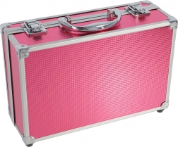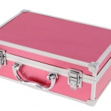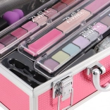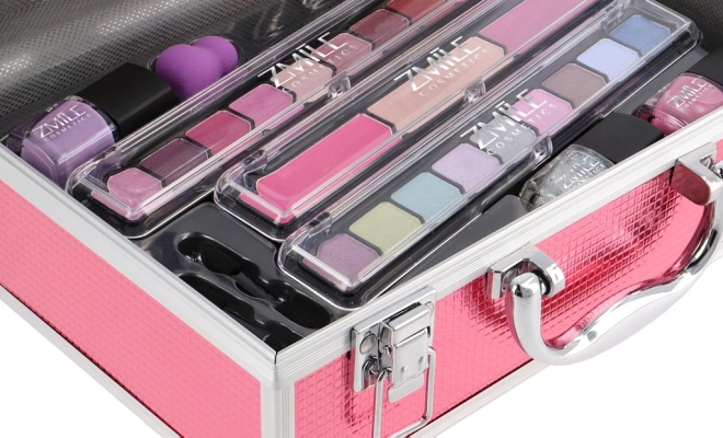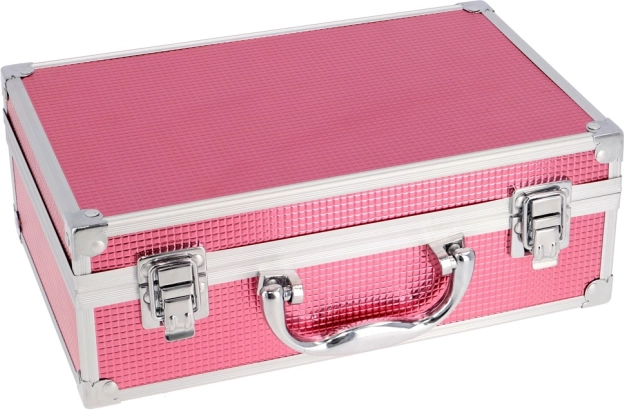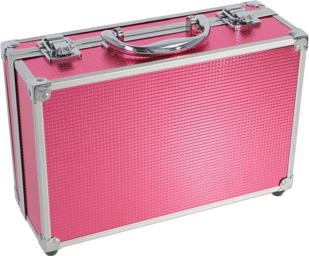 Beauty case Marry Berry con telaio in alluminio e specchietto integrato – in totale 38 pezzi di accessori. Contiene: 18× ombretti, 2× blush, 1× illuminante, 1× cera per sopracciglia, 2× lucidalabbra, 3× smalti per unghie, 1× mascara, 1× matita occhi, 1× matita labbra, 2× applicatori doppia punta per ombretti, 1× applicatore doppia punta per sopracciglia, 1× pennello per blush, 1× specchietto tondo e 1× mini spugnetta per make-up. Dermatologicamente testato, conforme alle rigorose norme UE.