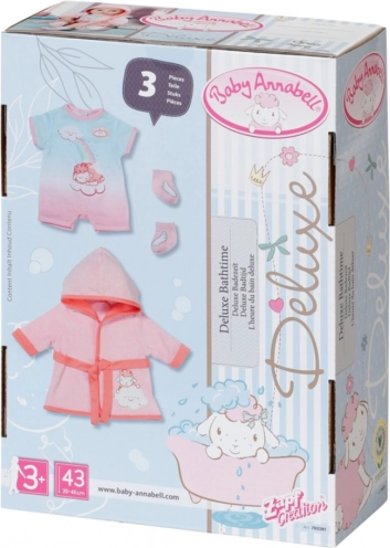 Baby Annabell vestaglia e pigiamino per bambole è ideale per ogni piccola amante del bagno. Il set, che include una graziosa vestaglia con cappuccio, una tuta corta e calzini, ti permetterà di divertirti anche dopo il bagno.