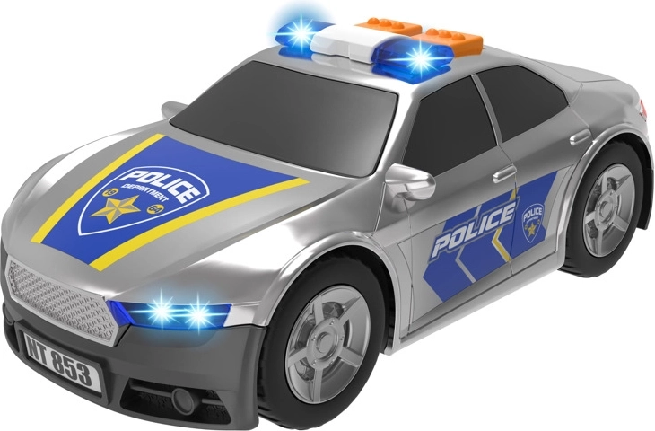 Corri in soccorso con l’auto della polizia Teamsterz. L’auto è dotata di luci e suoni realistici del motore e della sirena, che si attivano con una semplice pressione di un pulsante. L’auto viene fornita in colore argento e blu con dettagli grafici della polizia stampati e ha ruote libere, così puoi giocarci ovunque. Questa auto della polizia è un regalo perfetto per ogni piccolo appassionato conducente e offre ore di divertimento creativo. Richiede 3 batterie LR44 (incluse nella confezione). Adatto per età 3+.