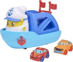 Teamsterz Piccolo Traghetto è un set di giocattoli giocoso progettato per piccoli avventurieri. Include un traghetto colorato e due piccole auto con facce amichevoli, ideali per divertirsi in vasca.