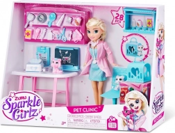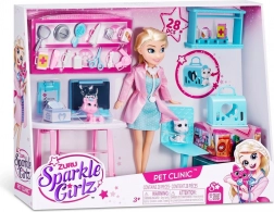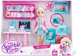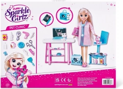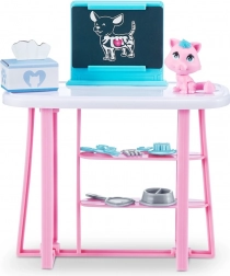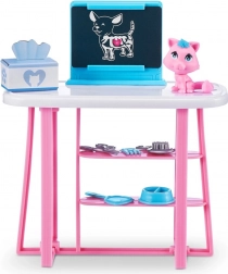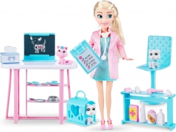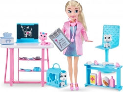 Questo set colorato trasforma la cameretta in un piccolo ambulatorio veterinario. La bambola – veterinaria con camice rosa ha un volto dettagliato, capelli fissati e outfit facilmente intercambiabile. Sono inclusi gli animaletti (gattino e cagnolino), tavolo da visita, stetoscopio, strumenti per la cura e il trattamento, cibo e gabbietta per un sicuro trasporto a casa.