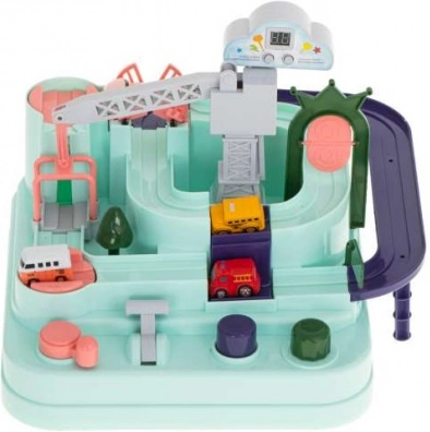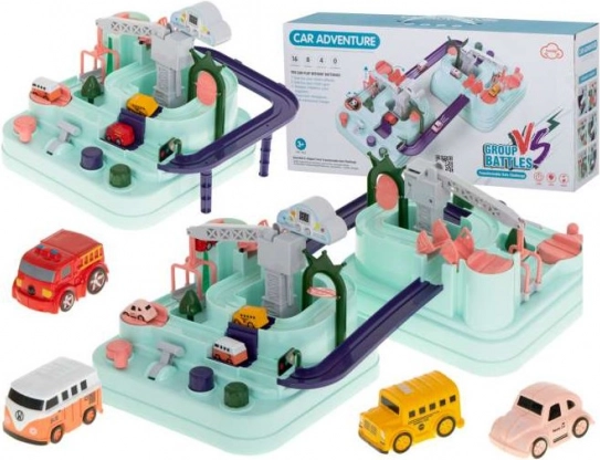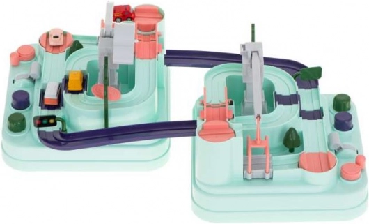 Vivi l'emozione delle corse con la **Pista interattiva doppia per auto**! Progettata per l'adrenalina a due giocatori, include quattro veicoli per un'azione di gioco immediata. Questo set di piste è perfetto per sfide entusiasmanti e allenamenti di abilità.