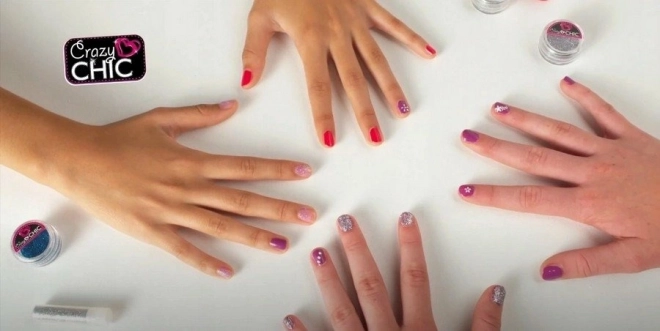 Trasformate il tempo a casa in un piccolo salone di bellezza con il set CRAZY CHIC per bambini. Dentro troverete un asciuga-unghie, smalti colorati, glitter, adesivi e una limetta – tutto per un nail art creativo e una manicure favolosa.