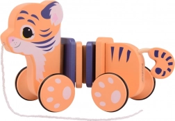Tigre di legno a traino Jouéco è un giocattolo divertente ed educativo per bambini dai 12 mesi, che aiuta a sviluppare la coordinazione occhio-mano e la capacità di riconoscere i colori.