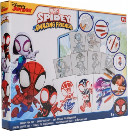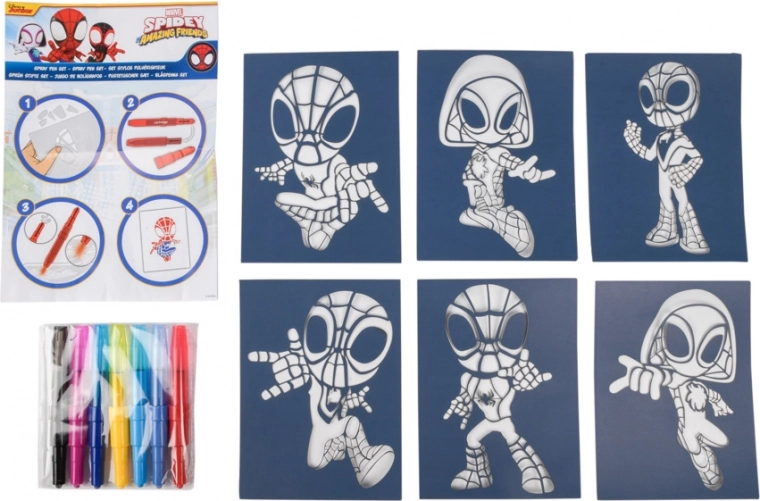 Colorare con i pennarelli a soffio Spidy – include 7 pennarelli a soffio e 6 stencil con immagini.