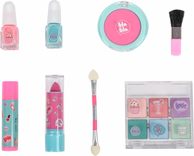 Set trucco Creat it Pink Turquoise – contiene 2 smalti per unghie, gessetto per capelli, pennello grande, balsamo labbra, rossetto, piccolo pennellino doppio, set di 6 ombretti glitterati.