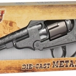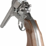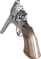 Il revolver argentato incluso nel set è a otto colpi e riccamente inciso, il che aggiunge autenticità a ogni sparatoria. La stella da sceriffo ti promuoverà a vero custode della legge.