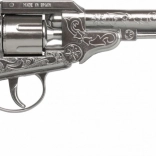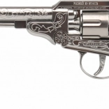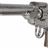 Il revolver in questo set è riccamente decorato con splendide incisioni, che lo rendono non solo un'ottima scenografia, ma anche un elegante pezzo da collezione.
