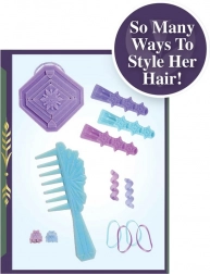 I bambini possono non solo spazzolare e creare diverse acconciature sui capelli di Elsa, ma anche usare adorabili fermagli per decorare e stilizzare le sue ciocche. La testa per styling di Elsa è ideale per i bambini dai 3 anni in su che amano il gioco creativo e la moda.