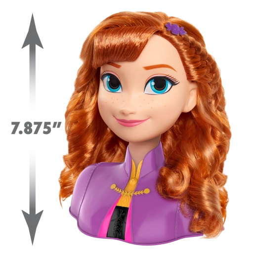 La testa per acconciature di Anna offre tantissime possibilità di gioco con i capelli! Anna ha i suoi iconici capelli rossi lucenti, ideali per spazzolare e fare styling. La testa per lo styling include 13 divertenti accessori da indossare e condividere, tra cui un pettine, quattro mollette per capelli, tre clip richiudibili, due fiocchi di neve, due elastici per capelli e una grande clip per capelli. La tua bambina amerà spazzolare i capelli di Anna e, con le adorabili mollette, acconciare e decorare le sue lucide e fluenti ciocche. Età 3+