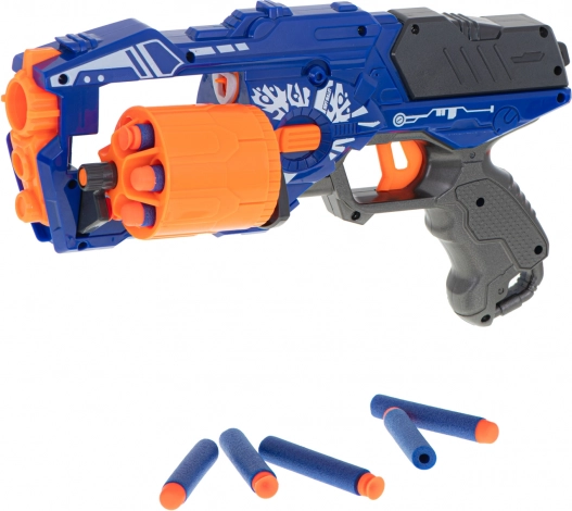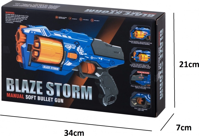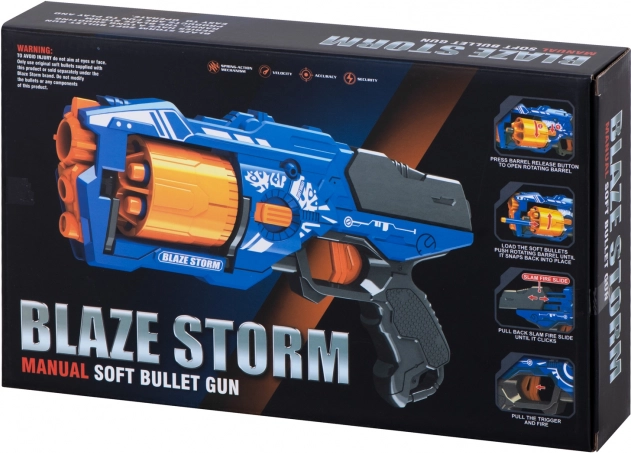 Diversi dettagli sotto forma di rilievi e grafica, che fanno somigliare il giocattolo a un'arma da videogioco, la rendono attraente per i bambini di diverse età. Il giocattolo delizierà i fan dei videogiochi, che possono trasferire i loro duelli nel mondo reale e allo stesso tempo correre! Un tale gioco all'aperto aiuta il coordinamento motorio e ha un effetto positivo sulla salute fisica di tuo figlio. La pistola ti incoraggerà a trascorrere attivamente il tempo libero all'aperto. Blaze Storm è un grande giocattolo che fornirà ore di divertimento a tuo figlio. Nonostante le sue dimensioni, non è pesante, quindi il suo controllo rimane facile e divertente. Il giocattolo offre un vantaggio significativo sull'avversario. Spara non solo rapidamente e con precisione, ma anche su grandi distanze. I fucili non richiedono batterie. È sufficiente caricare il caricatore a tamburo con dardi, caricare l'arma tirando indietro l'otturatore e sparare.