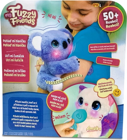 Scopri la magia del peluche interattivo koala Eda della linea My Fuzzy Friends. Questo tenero amico reagisce al tocco e all'interazione in oltre 50 modi diversi, tra cui suoni e movimenti. Eda ha articolazioni speciali che gli permettono di avvolgere il braccio del bambino e stringersi a lui. Puoi accarezzare la koala, fare il solletico, nutrirla, pulirle il naso e persino aiutarla ad addormentarsi.