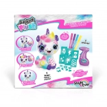 Scopri la magia del tuo design con questo set creativo: unicorno di peluche, aerografo, 3 ricariche di colore, 120 stencil adesivi e guanti protettivi. Puoi spruzzare liberamente il tuo animaletto, lavarlo in acqua fredda e ricominciare da capo – divertimento senza fine per bambini dai 6 anni. Richiede 2× batterie AA (non incluse).