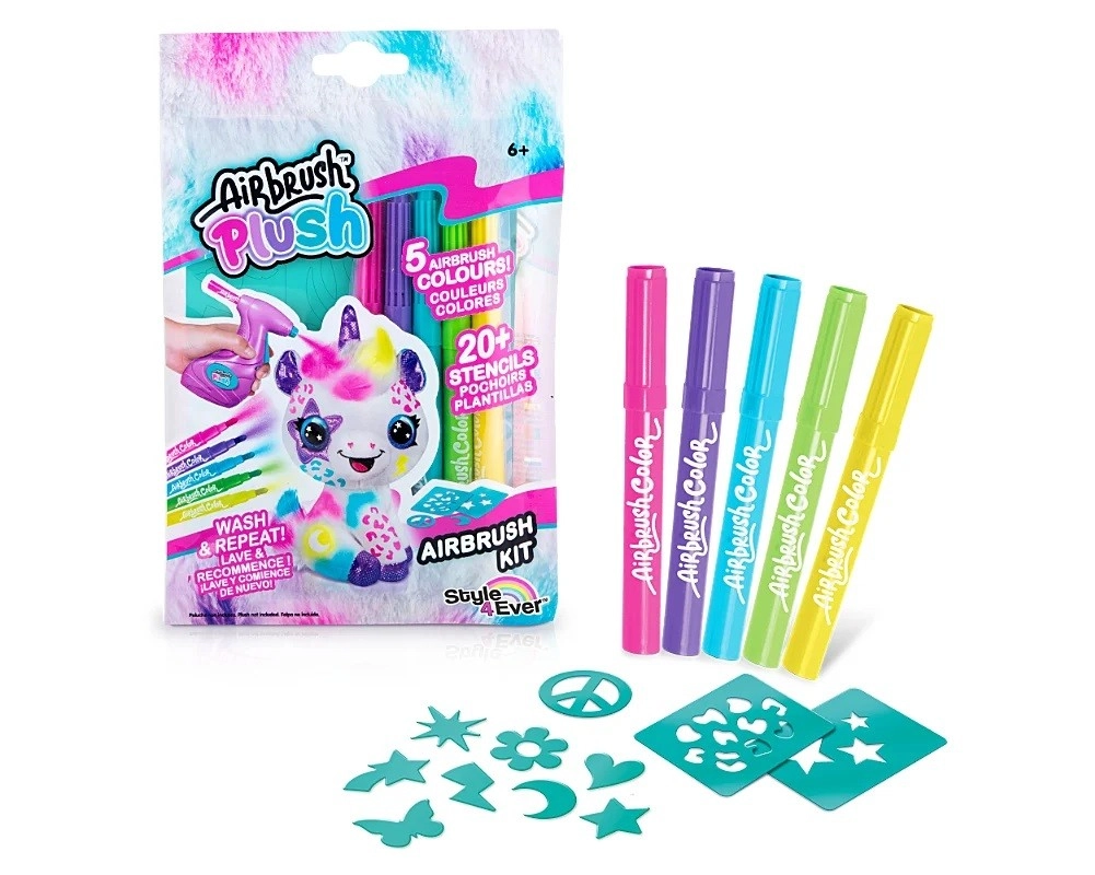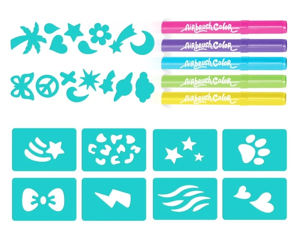 Completa il tuo set creativo con pratiche ricariche per aerografo. La confezione include 5 colori vivaci e 20 stencil per creare in modo semplice e divertente. Ideale per bambini dai 6 anni che amano dipingere e scoprire nuove tecniche.