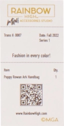 Nella collezione troverai 27 diverse borse dal look quotidiano a quello serale. Puoi optare per tote bag, zaini, marsupi o clutch serali. Ogni borsa è confezionata in una iconica valigetta Rainbow High, che include un sacchetto sottovuoto, tovagliolo di carta, adesivo e anche una ricevuta stampata con custodia corrispondente.