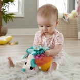Il pancino frusciante, il jingle a sorpresa interno e il nasino che squittisce mantengono l’attenzione del bebè e favoriscono la comprensione di causa ed effetto.
