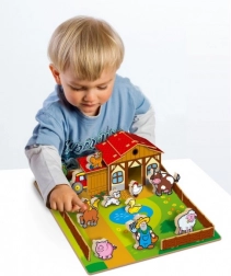 Questa fattoria in legno è ideale per i bambini piccoli dai 3 anni in su. Su una base di legno di dimensioni 31 x 31 cm, la fattoria può essere facilmente montata, creando una casetta perfetta per il gioco piena di animali. Si compone di 28 pezzi, offrendo infinite possibilità per giochi immaginativi.